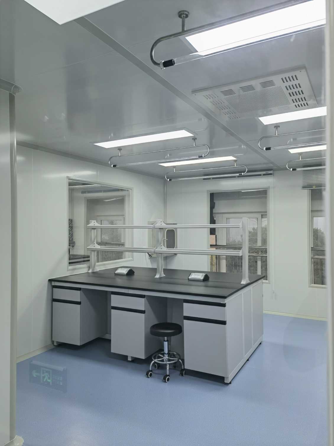 3、通风排气:无菌实验室应设置独立的通风排气系统,确保室内空气流通,防止细菌、病毒等微生物滋生。排气口应设置在室外,并远离人员密集区域。